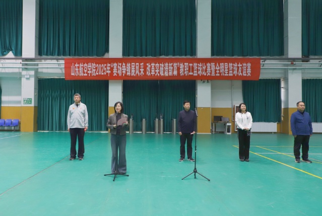 为深入贯彻全民健身国家战略,赋能校园文化蓬勃发展,激发教职工队伍凝聚力与奋进活力,10月23日,山东航空学院2025年“赛场争锋展风采 改革突破谱新篇”教职工篮球比赛暨全明星篮球友谊赛在砺学综合馆正式拉开帷幕。党委委员、副校长宫新军出席开幕式并为比赛开球,工会主席、妇委会主任王秀丽主持仪式。赛事组委会全体成员,各参赛代表队领队、教练、全体运动员,教师及学生代表参加了开幕式。