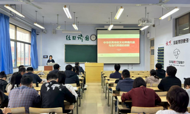 学院教工党支部书记张敏老师以“中华优秀传统文化师德内涵与当代师德创新”主题,以“承古鉴今”为脉络,搭建传统与现代的思想桥梁,有效激发教师涵养高尚师德的内生动力,同时号召全体老师将教育家精神融入教育教学,服务学校和学院发展。