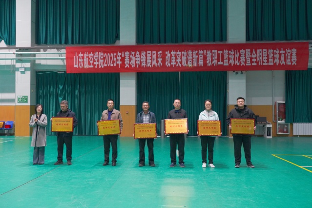 11月11日下午,山东航空学院2025年“赛场争锋展风采 改革突破谱新篇”教职工篮球比赛暨全明星篮球友谊赛在砺学综合馆圆满落下帷幕。党委委员、副校长孙银河,工会主席、妇委会主任王秀丽,宣传部常务副部长、教职工篮球协会主席于峰,体育学院党委书记肖忠峰出席闭幕式并为获奖团体与个人颁奖。工会副主席王树斌主持闭幕式。