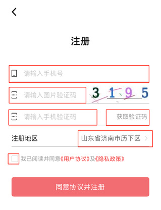 ①进入注册页面,用户可以通过手机号,自行注册账号。